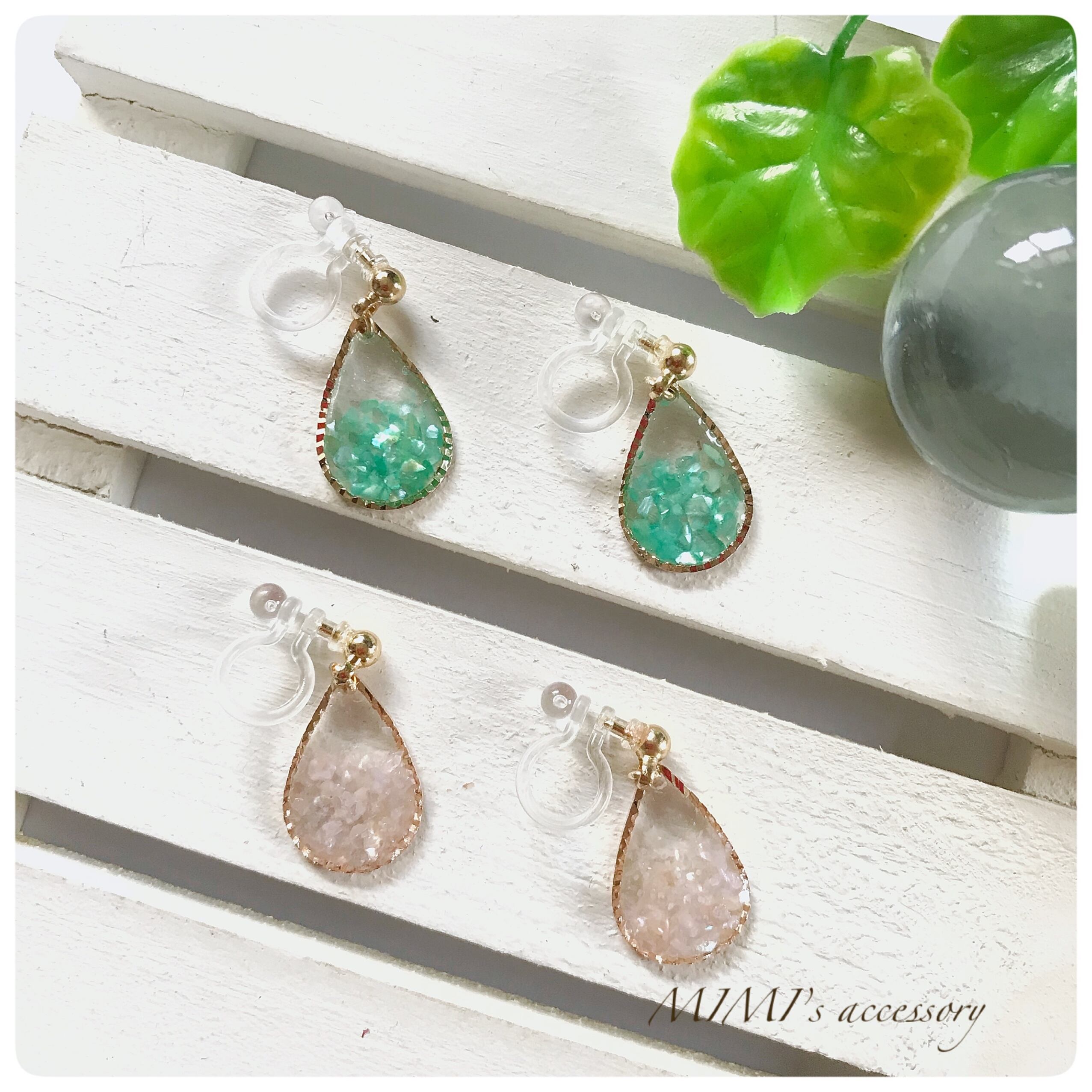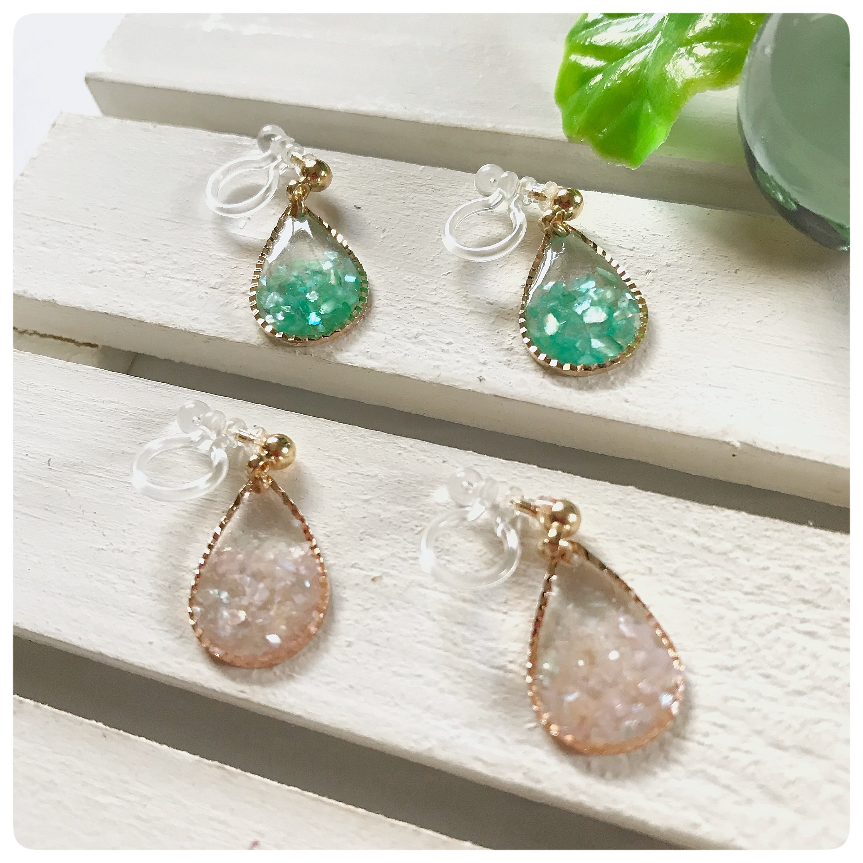 樹脂ノンホールピアス 、クラッシュシェル、レジン、メッキ